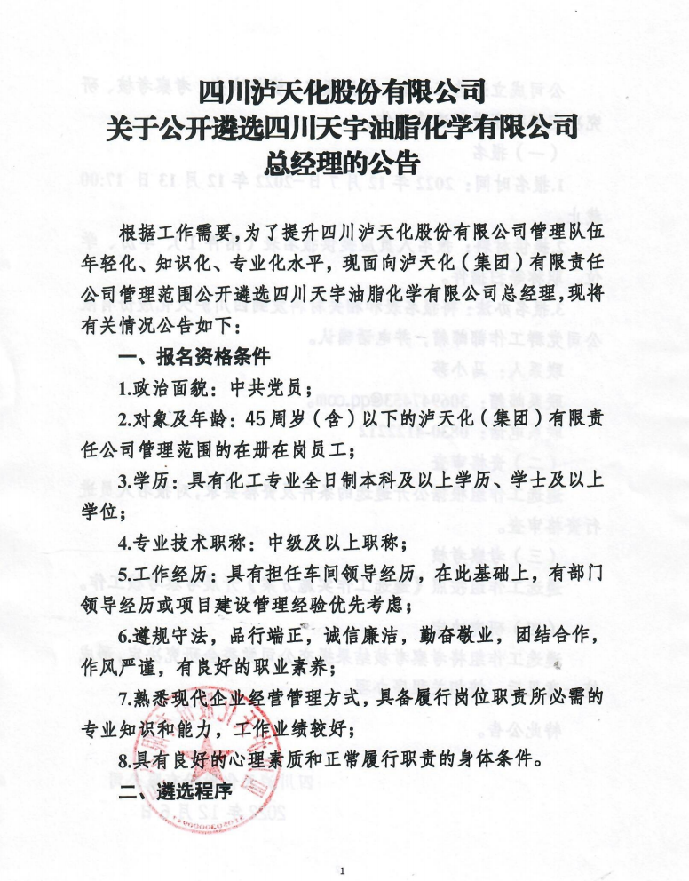 招聘單位:四川瀘天化股份有限公司